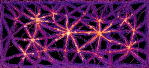 “Billboards are typically utilized as a way of advertising commercial products or services on a large scale. Playing on this idea, these images for the Missouri Bank Art Boards (Fall 2012) represent the largest structures in the universe presently known to mankind. In a time filled with economic gloom, where one debt crisis after another rises to the surface of our attention, it is easy to lose perspective on the true scale of things. Perhaps a reminder is in order for what constitutes a big deal on a universal level and the biggest deal of all is, in fact, galaxy superclusters.” Quote from Rachelle Gardner