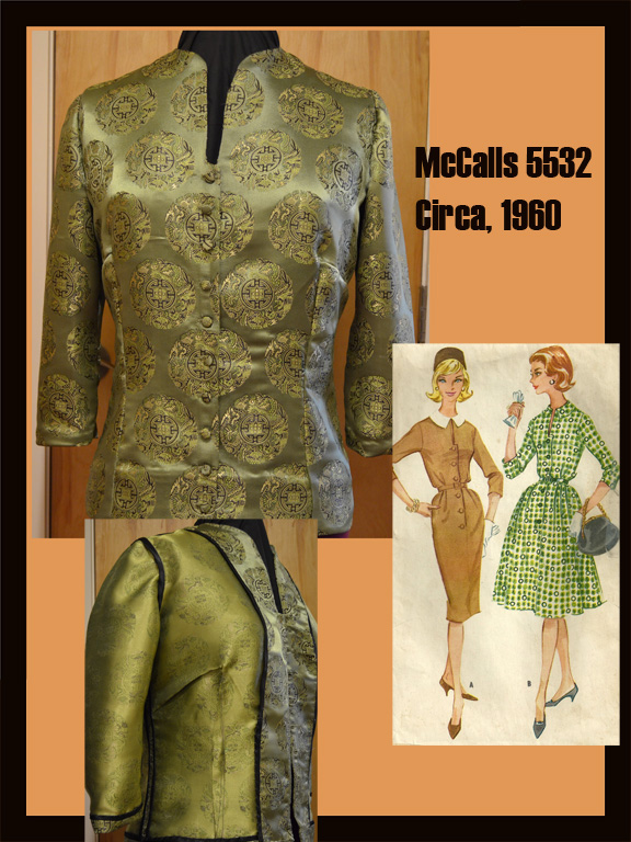 My green Asian inspired blouse was created from one of these patterns. Pictured is the blouse and pattern. I kept the neckline, which I thought was wonderful. The sleeves are the same. However, I re-cut the bodice into a blouse shape, added darts around and am very happy with the results.