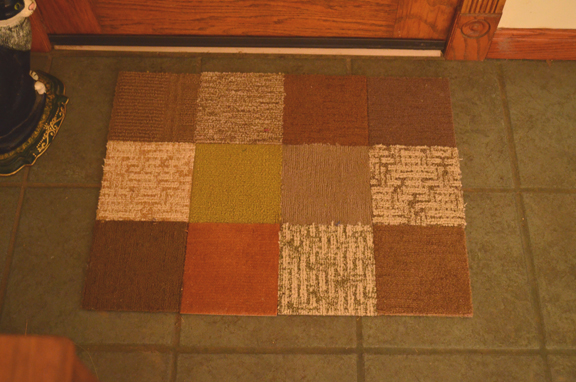 So I probably went over board ordering FLOR samples in trying to get just the right look for my rooms. Yesterday, I was staring at all of them and decided to get out the duct tape and see if I could actually put them to more use than just taking up space. And I now have my FLOR sampler rug for the back door.