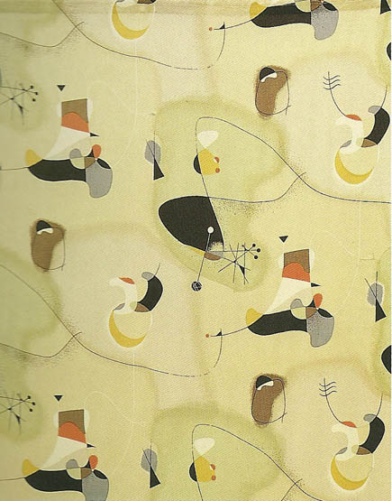 | Espace, sceen printed rayon fabric, designed by Elsbeth Kupferoth for Pausa, 1954 |