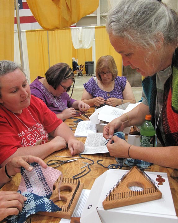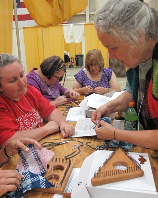| Carol Leigh of Hillcreek Fiber Studio leading a workshop using Hillcreek’s Mini-Mod looms. |