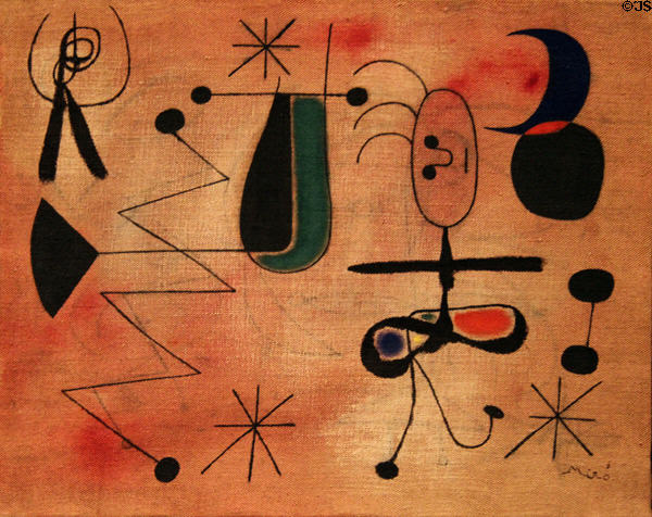 I have a affection for the childlike surreal world that Joan (hoh-ahn) Miró created. His lyrical lines and beautiful forms and color appeal to the pre-schooler to the grandparent. Miró talks to everyone.