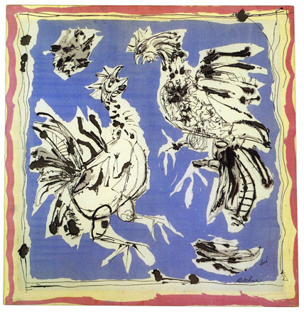 | Francoise Gilot, Quatre Oiseaux (1947)-Although Picasso never directly designed a scarf for the Aschers, this one was submitted by is companion at the time. Hummm…………. |