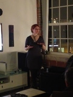 Amber and Matt Crawley graciously hosted the event. They have a nifty loft in the Piper Lofts Building–fortuitously just across the street from the boards! Amber and Matt have a spectacular view of downtown KC and Rachelle’s works shone just across the street with the Kaufman Center Buildings in the background.