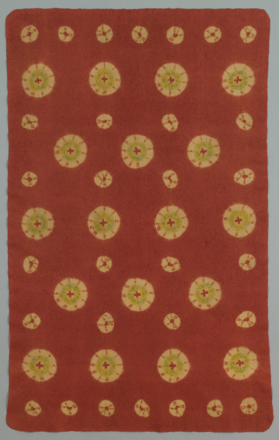 | A Japanese tea ceremony rug dated from the late 19th century. It is tie-dyed felted wool. Read about it here. |