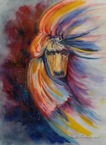 I have wanted to do a collection of modern abstract art inspired by Poodles for a while. My criteria for selection was that an artist made a personal statement which was inspired by Poodles. Use of design and color was also considered
