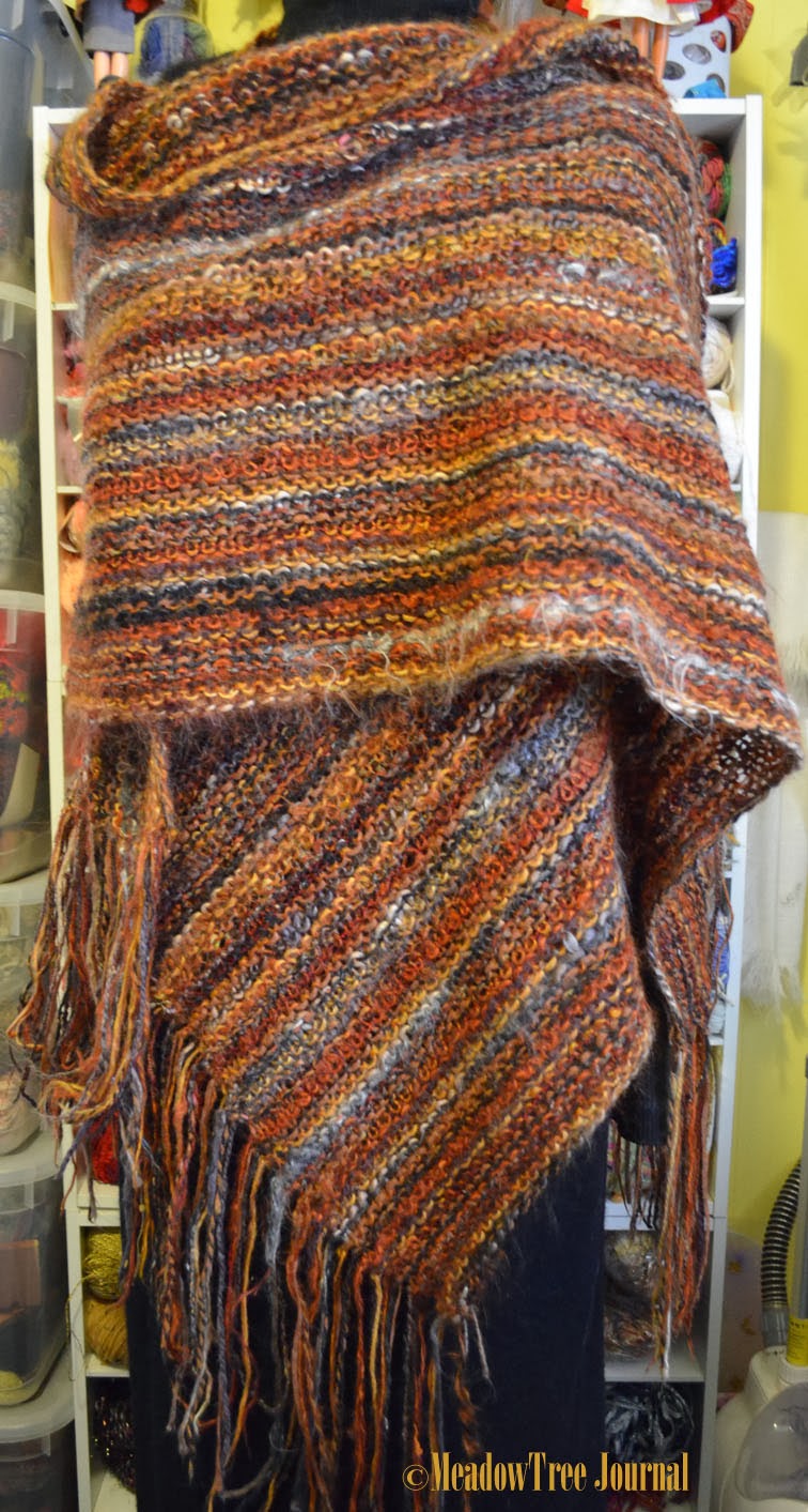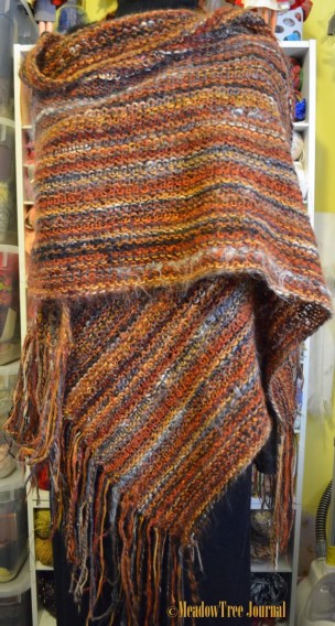 This technique does not have to be limited to just scarfs and such. The last photo below is of a caplet. This was the first thing I made using this technique and was knitted in the Stockinette stitch. The shawl and scarfs came later.