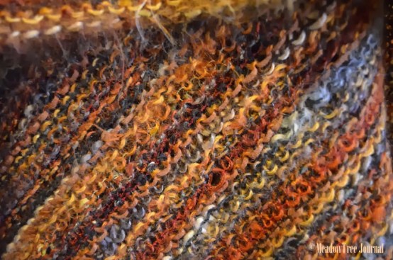 8.     DECIDE HOW WIDE YOU WANT THE project and then bind off.  I had 34 rows of knitting for the monochromatic red scarf and 146 rows for my golden brown shawl.