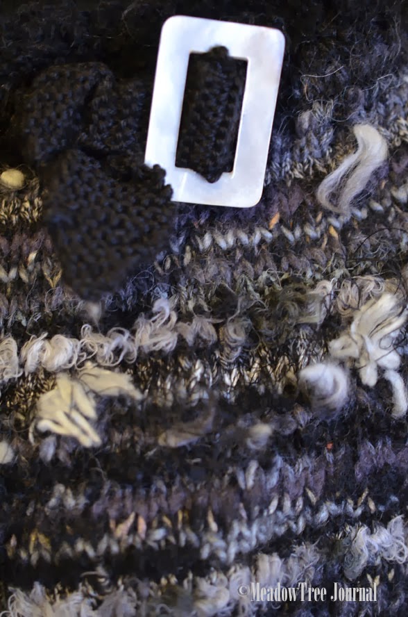 I do love my closeups. The vintage mother of pearl buckle came from Ebay.