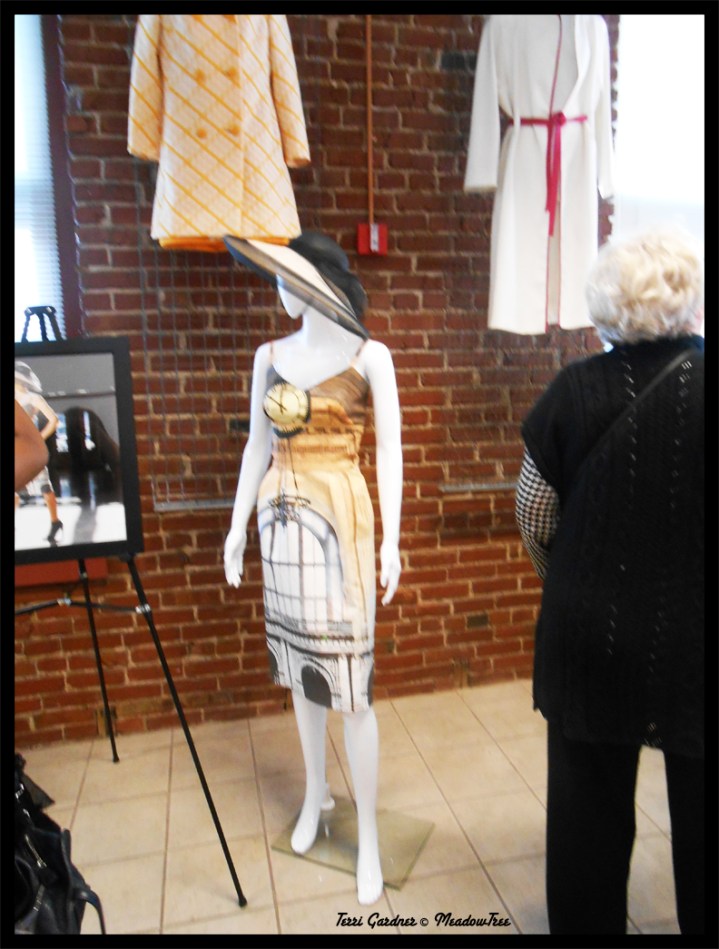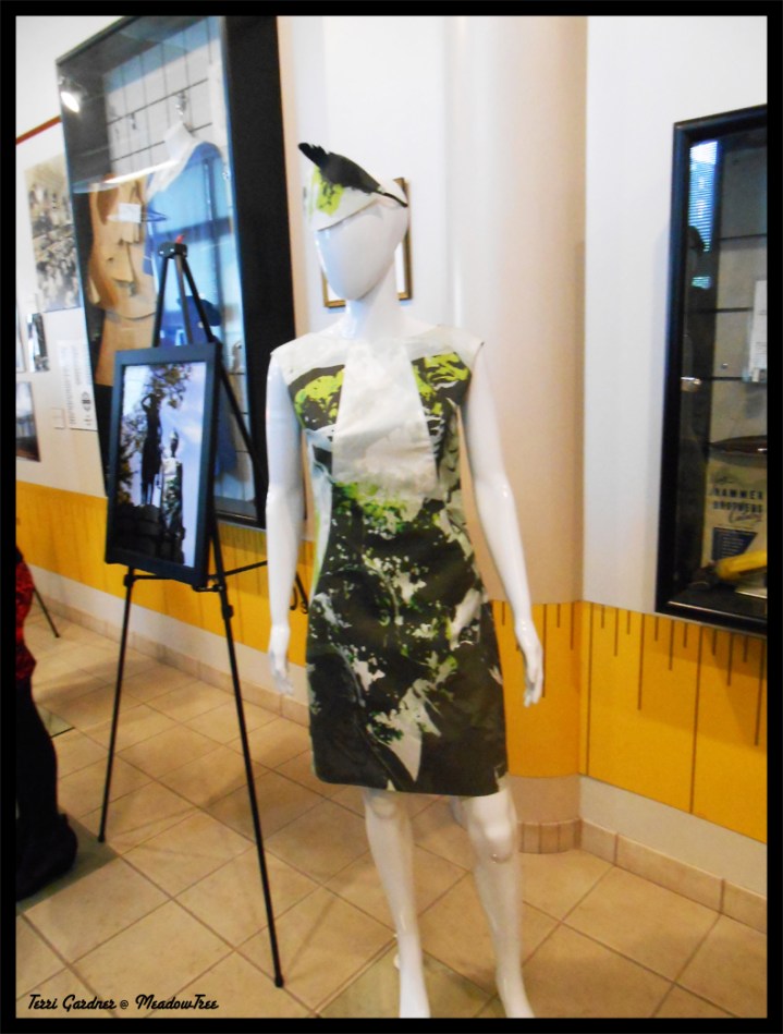 This current show centers on Heidi Herrman’s spring line KC Icons Collection. Each design has it’s own inspired hat by Amina Marie Millinery and a Steve Gibson photo of the dress united with its inspirational Kansas City icon.