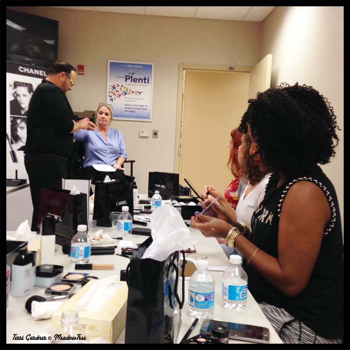 | Members of the Kansas City Blog Guild trying out Chanel’s makeup and skin care products |