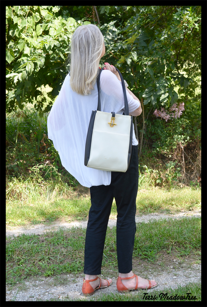Hello and welcome to a new blog post. For today’s post, I am trying a small experiment. I do like my separates to function on different levels. This topper by Rachel Ann Gottlieb, originally purchased from ETSY for a “Dress Inn All White” party I attended earlier in the Summer, is no different. I didn’t want it to be a one-hit wonder. This top has a very long tail in the back and makes quite a visual impact if used with the right look (see below this photo).
