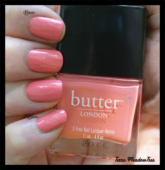 This week’s polish is the one I felt matched the corals that I was wearing. I don’t have to explain this one, because I know most of you are familiar with Butter London and this is one of my favorite summer corals: Trout Pout. It is still on their web site and I see that it is on sale for $7.50.