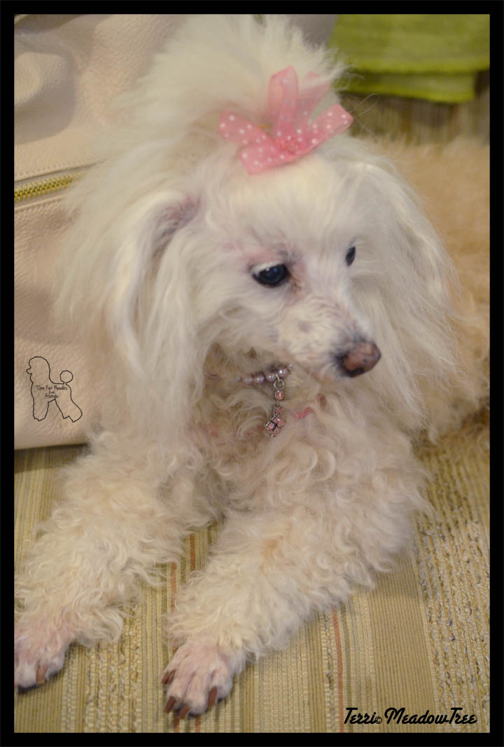 Of course, the most important accessory in these pictures is Sophia, my miniature apricot poodle. I adopted her seven years ago come this October 1st, when she was about 3-5 years. She is one of the best things I have ever done. I took a ragamuffin who looked so bad that the rescue named her Fraggle and turned her into a queen (well, in my eyes).