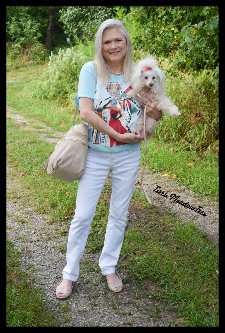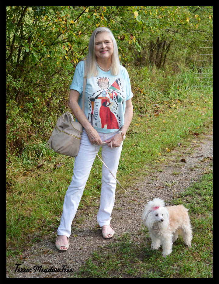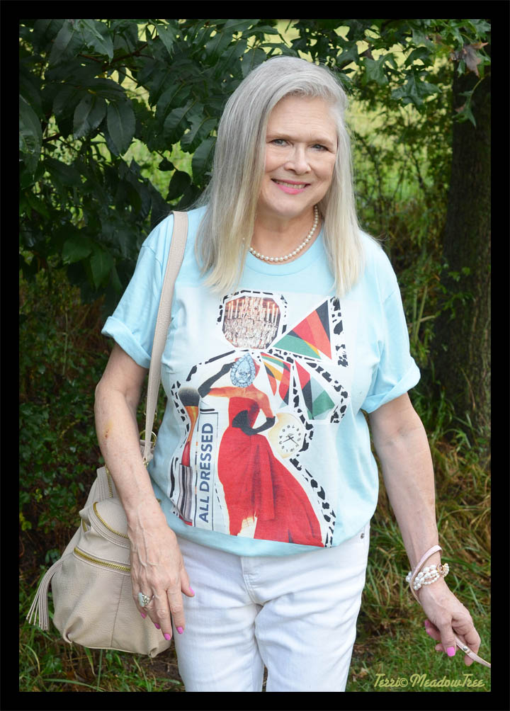 A good friend from North Carolina often insists: “Southern women wear pearls with their flip flops.” Well, this is my answer. This mid-western woman wears pearls with her tee shirts.