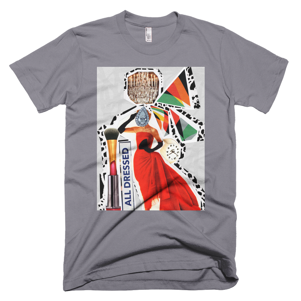 However, I knew about a month ago, I was going to fall off the “no buy” tee shirt wagon. Whitney Manney, an up and coming Kansas City designer, came out with her Paper Cut Tee Shirts. I had to have one. The designs in the shirts are exactly what they say: paper collages. My term for them is Graphic Art Tee Shirts, because I feel like I am wearing original art. The design I chose here is All Dressed.