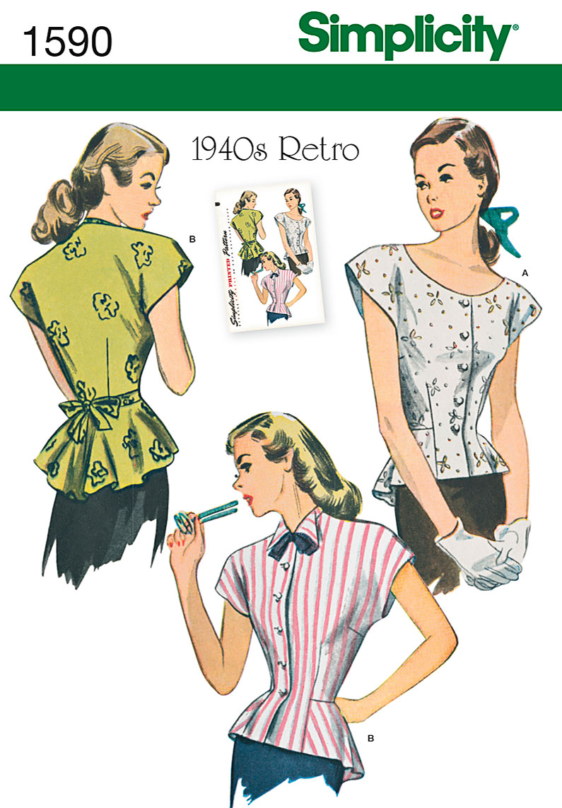 Also, I made my Mazarine Blue silk (from Mood Fabrics) blouse using Simplicity 1590. This pattern is a vintage reproduction from the 1940’s and I think the two styles from the different decades go together nicely.