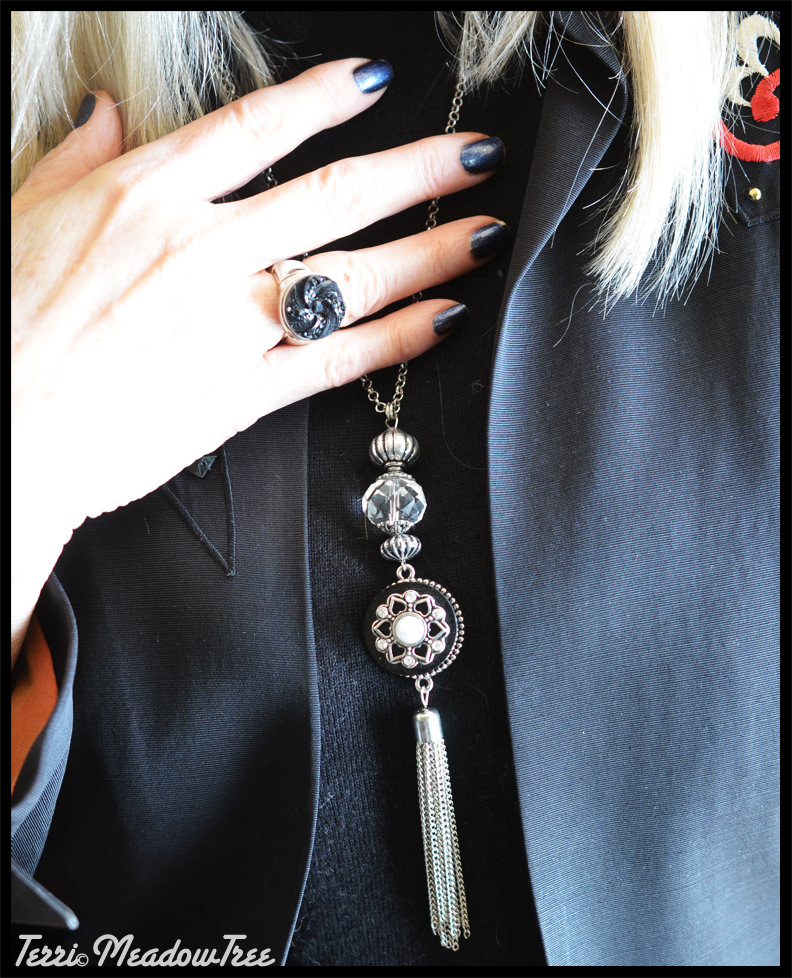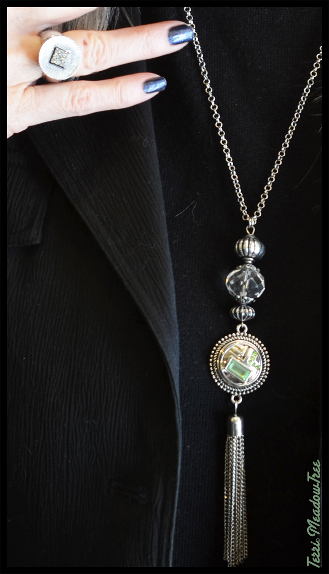 The third piece I picked is a fringed pendant. I don’t know how you feel, but I have finally decided that fringe is going to be around for a while. This particular necklace was picked from Sheree’s shop and darn if I can’t find it on the web site. Maybe it was discontinued, but there are still other fringe necklaces. I actually like The Long Triangular Drop better than mine.