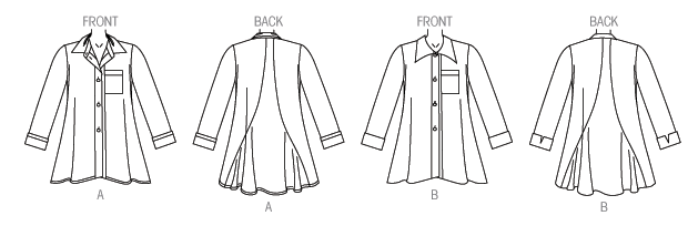 The pattern line art gives you a chance to see the lines and details this shirt has. I made View A with View B’s sleeves. I wanted every detail I could get. The collar has a pin tuck to set it off and I definitely wanted that notch in the turn up cuffs. The extra panel in the back adds a real swing to the thing!