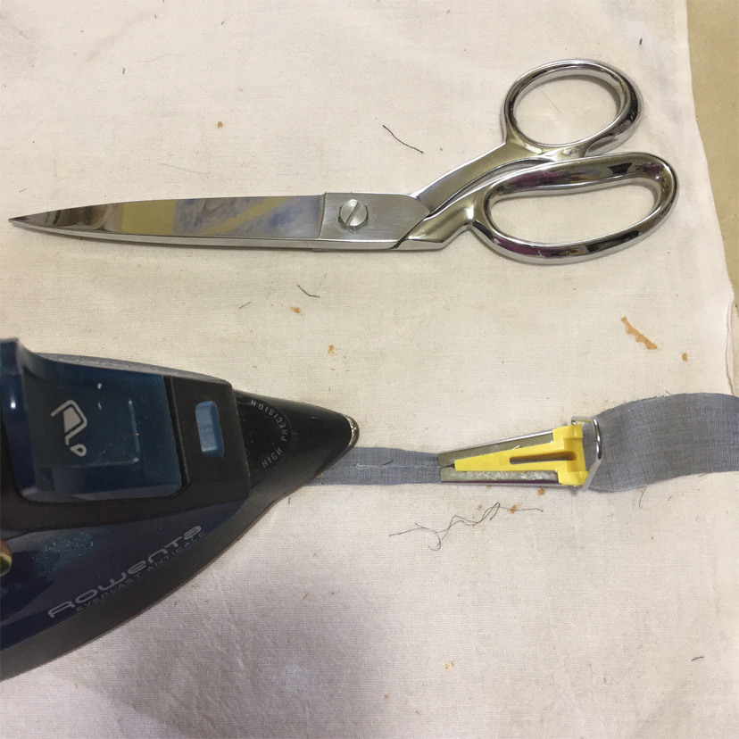 My handy dandy bias tape maker makes it very easy to make my own bias tape.