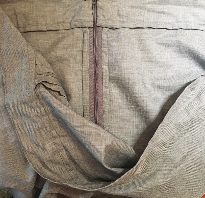 Although this pattern is only three pieces, I consider it to be for advanced beginners. It’s important that you make all the notches and marks that the pattern calls for, especially in the waistline area. Also, all seam are bound which takes time and patience but the effect is a very high quality finished garment.