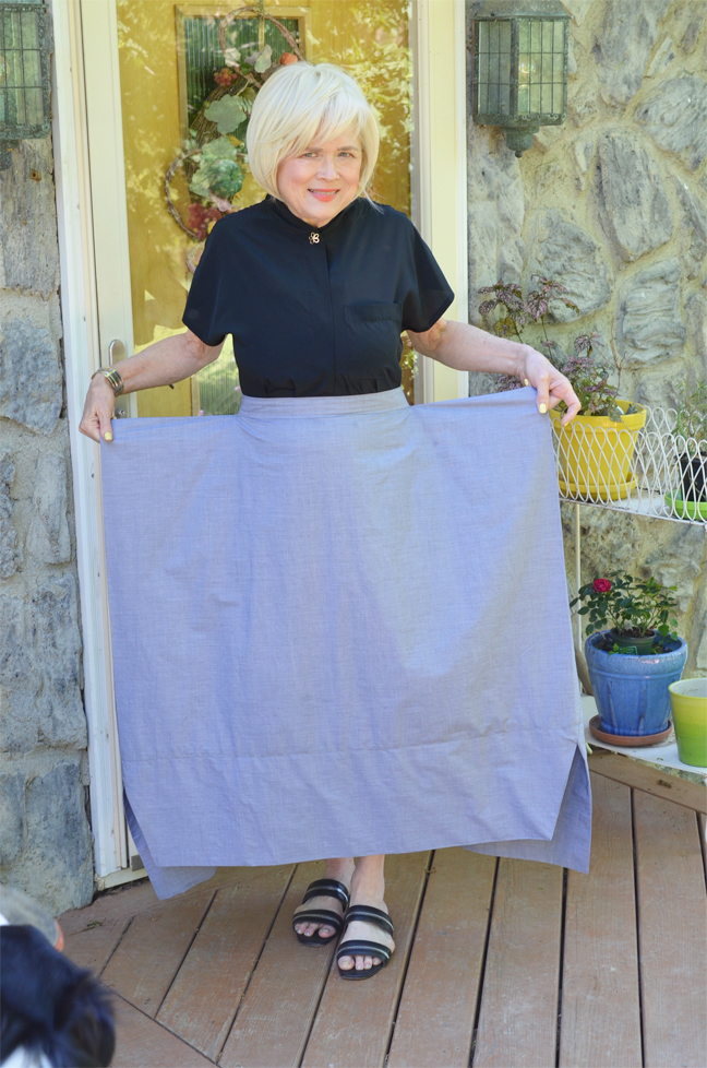 I would recommend that all markings are dead on because, although the sewing is basically easy, precision is important. Also, if I make this skirt another time, I might shorten it by two inches (like the view on the pattern front). The next one would be for winter in some type of wool flannel and I think shorter should work better with boots.