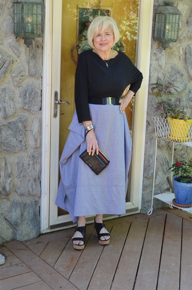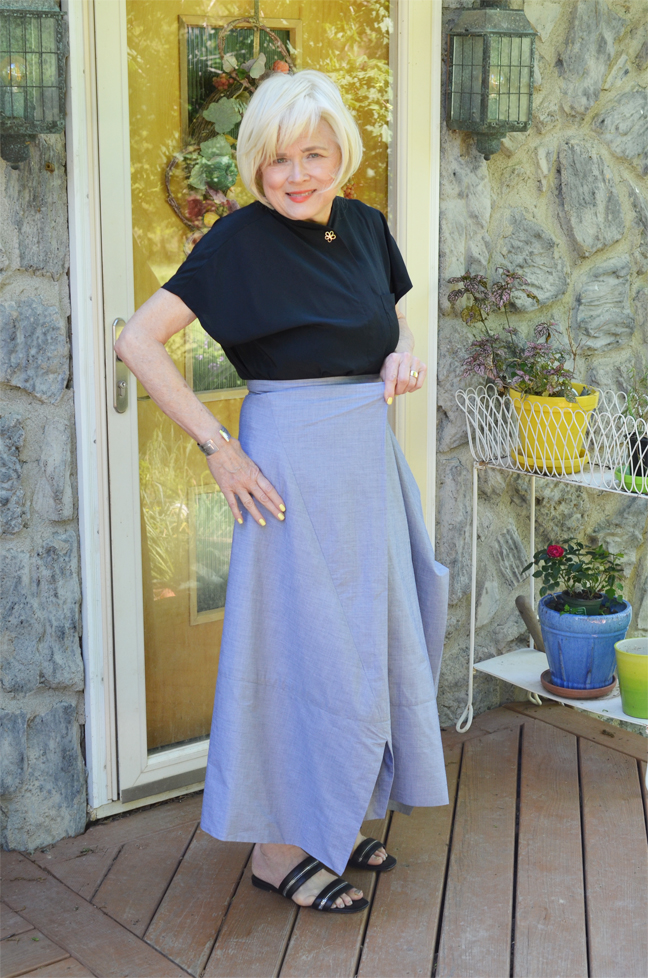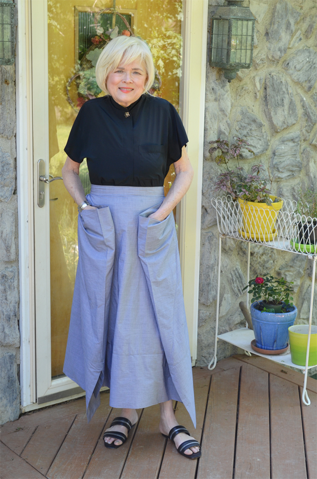 Wow! What an interesting design. I can see why this pattern intrigued you, Terri! The skirt looks wonderful in all the ways you’ve styled it. It’s nice when you love something so much that you want to make it again. ‘