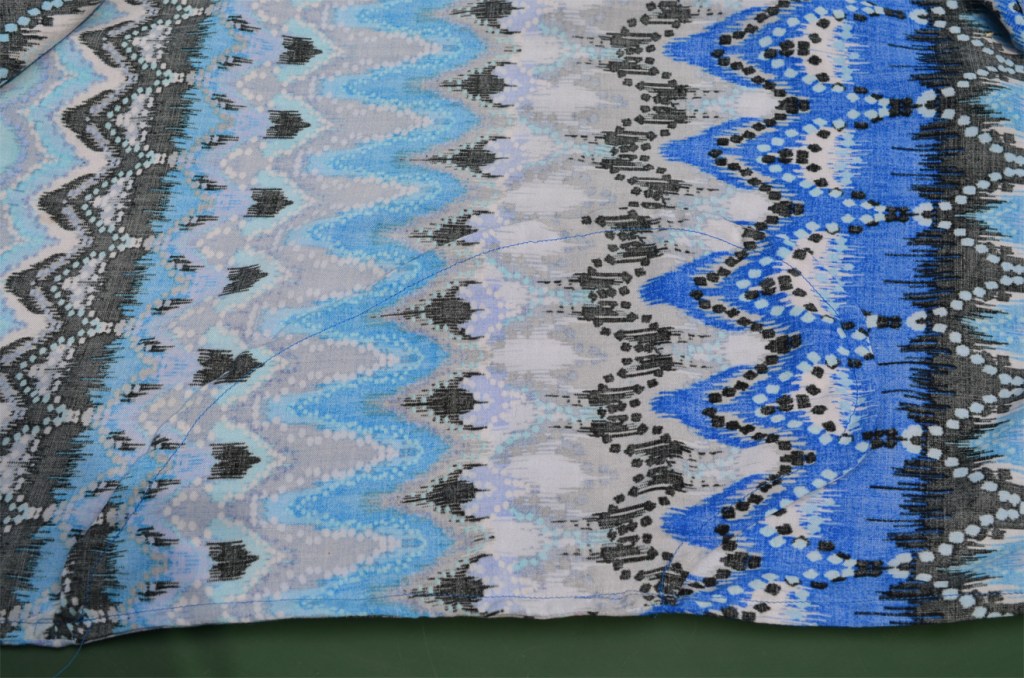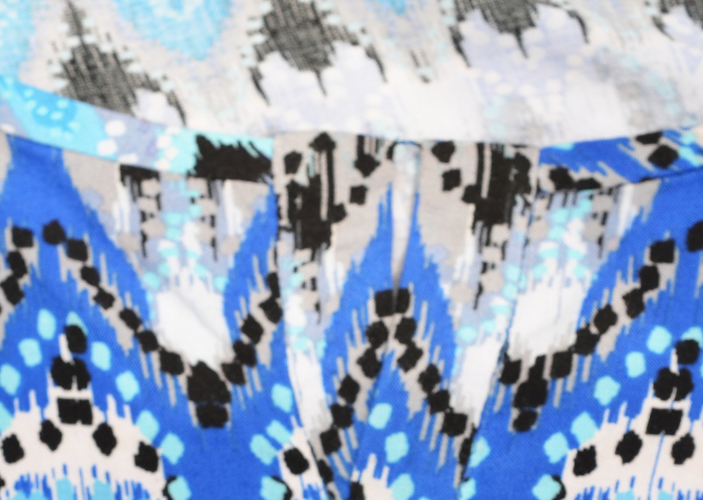 Also, with a vertical pattern this large, care needs to be made in lining up the repeats because it would really show if you didn’t. I took extra time basting the side seams so the fabric would not slip as I was sewing it on my machine.