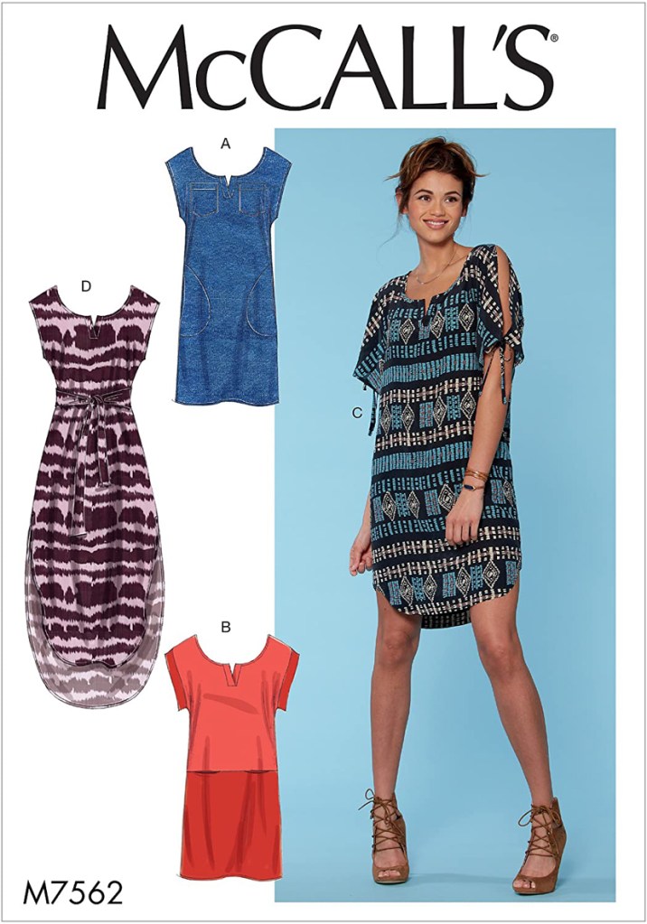 McCall’s describes this pattern as loose-fitting pullover dresses that have sleeve and hem variations. I will add that it also has pockets. The version I made was view C. If you like easy to wear comfy summer dresses, this pattern, with all its variations is a good investment. My oldest daughter and I really like this pattern too so I would not be surprised if someday all three of us have some version of this dress.