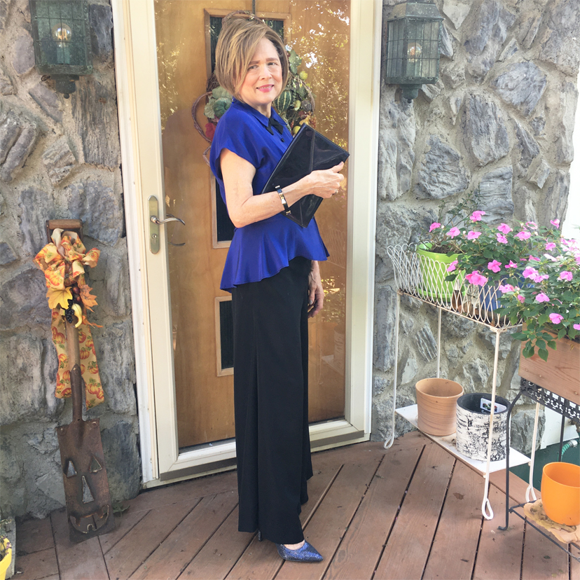 Terri, both of these outfits are so beautiful and elegant with the perfect jazzy feel for the art inspiration. That cobalt blue is magnificent on you and I really like the peplum style with your palazzo pants. I am a fan of jazz as well but not very literate in the genre. I often put on jazz mixes as background music while I am working. I really enjoyed reading the history of the KC jazz scene. And you are so right, good things can come out of bad. I think that happens most of the time in one way or another!