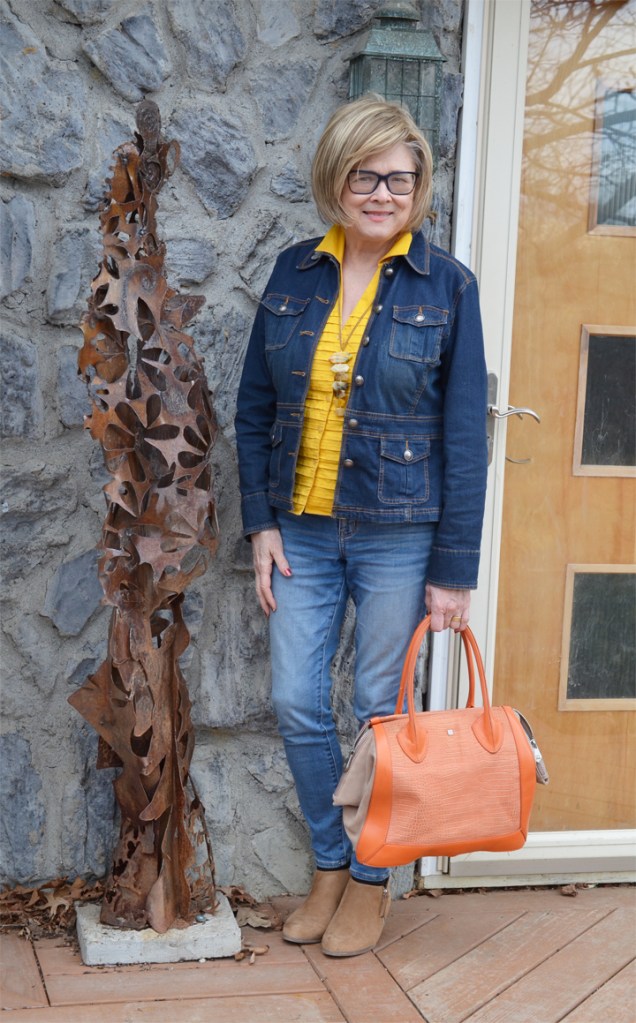 Oh wow, Terri, this is such a wonderful outfit! I love the bright yellow with the double denim. And that denim jacket really is a great style and cut. I have a unique denim jacket from Lane Bryant that I bought at least 20 years ago and it is still my favorite denim jacket! Your necklace is gorgeous, too. I am going to read that post to see it in more detail.