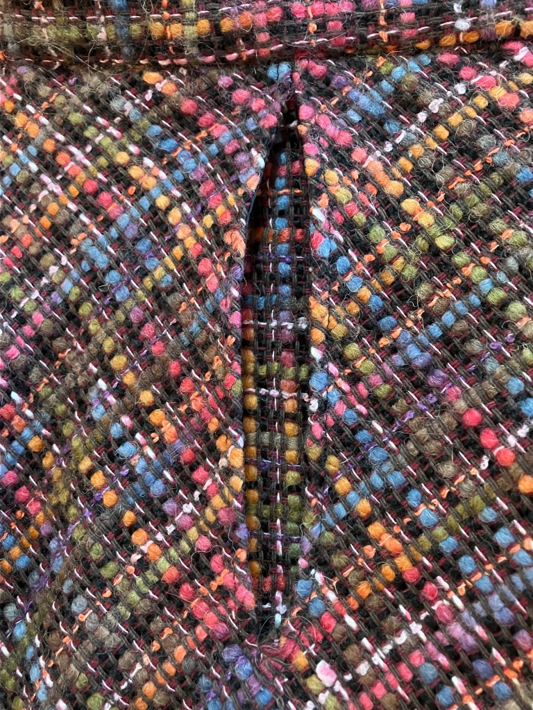 I picked this tweed up in 2020 (right after Liz released her pattern) but, unfortunately, it is not available anymore. I think the colors in this fabric are lush and gorgeous. Mood Fabric has other Italian tweeds still in stock, but nothing like this one.
