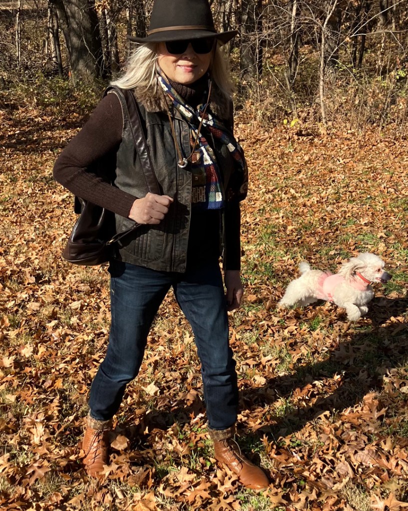 Terri, this outfit gives me all the Grand Canyon vibes from your boots to your vest to your awesome hat. I really love that you chose these specific pieces because you wore them to visit the Grand Canyon. Fabulous interpretation! Lynne and Niki are so cute. I bet they would enjoy a run through the Grand Canyon!