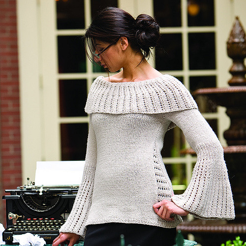 There is one more sweater that I just love. It is Simone. I would love to knit it from some of my own merino/alpaca mix. However, I would have to spin the yarn first and that would be a major project. As I write, my fiber is at the mill being processed.