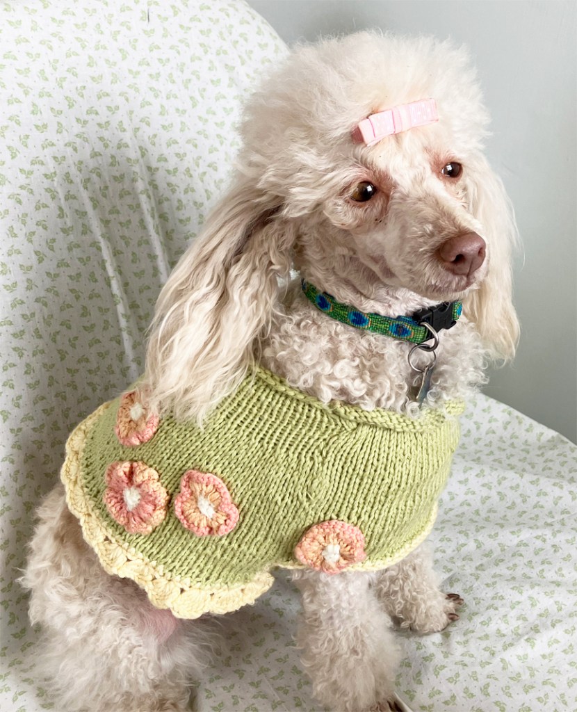 Yes, I am one of those! I knit and sew for my dogs. Before 2009, I would not have dreamed of taking the time to do something like this. But then I adopted a five-year-old Toy Poodle I named Sophia and fell into the abyss of fashionable dogs. It’s a life style.