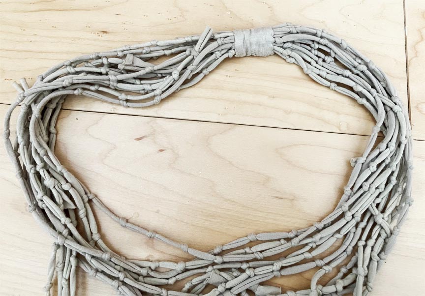 I knotted around 10 1/2 yards of knit strips for my necklace and wore it quite a bit during the summer.