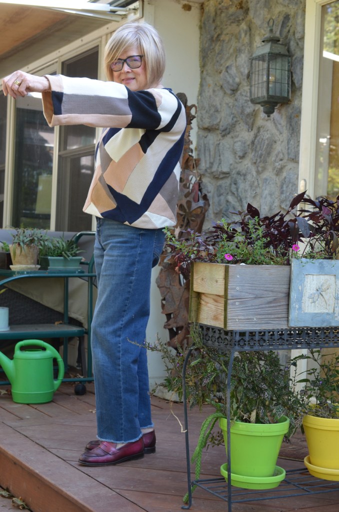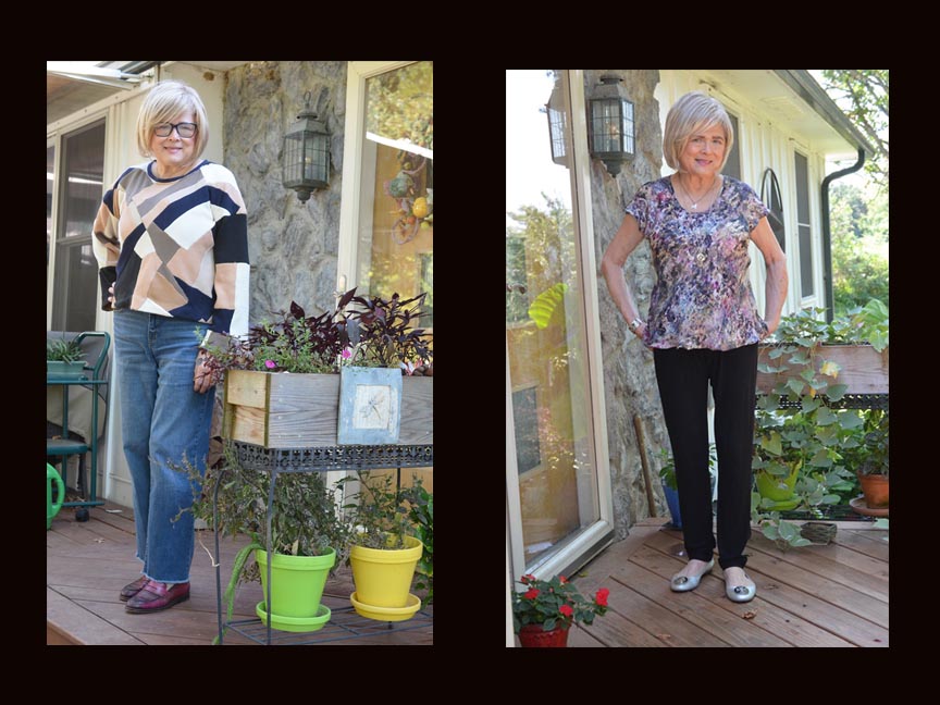 Also, I shorten my Xanthea. After trying it on with the pants I would mainly wear with it, I decided with the top’s strong patterning, I liked it being a tad shorter.