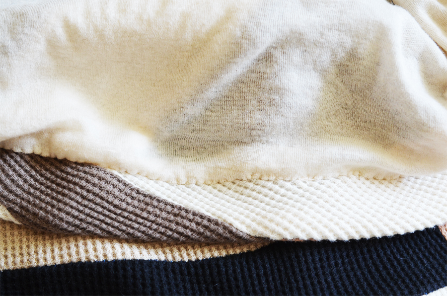 I used scraps of Alabama Chanin’s organic American-grown and processed waffle knit. These were picked up during April’s Project Threadways Symposium at Alabama Channin’s factory in Florence, Alabama, which I attended with my daughter, Rachelle.