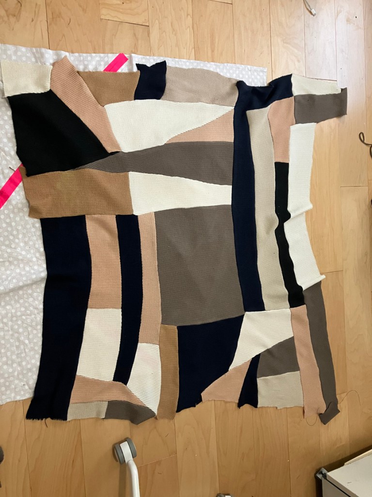 I didn’t have pieces of smooth knit that were large enough from what I brought home anyway. However, Alabama Chanin has scrap bundles for sale in color and weight choices. That was tempting to order.