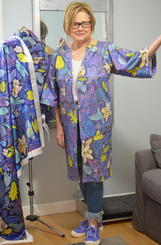 Below is a bog coat that I made using their 100% organic cotton knit. With knits, the colorways are going to be much more subdued, which, for me, was perfect with this Bog. It goes with jeans, but then I can also dress it up.