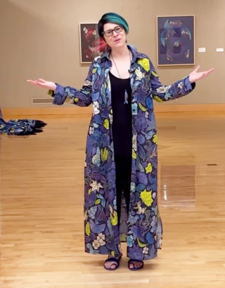 I think your daughter looks absolutely fantastic! I love this print, and her hair color is perfect! Is her show only textiles, or are her textiles based upon her other artwork? Congratulations to both of you for this beautiful look!